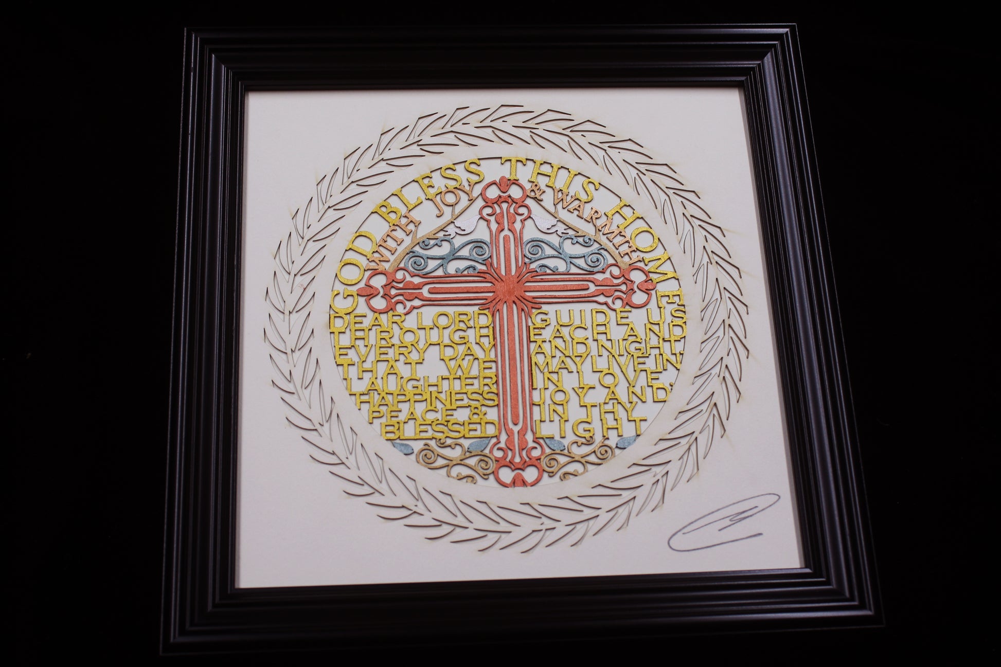 Glenn’s unique paper-cut creations are digitally designed on archival museum board (which meets the Library of Congress standards for archival properties), precision cut and hand-painted with eco-friendly acrylic paints, resulting in a beautiful metallic finish. His designs add inspirational saying to encourage and motivate. Perfect for gifts or as part of a collection.