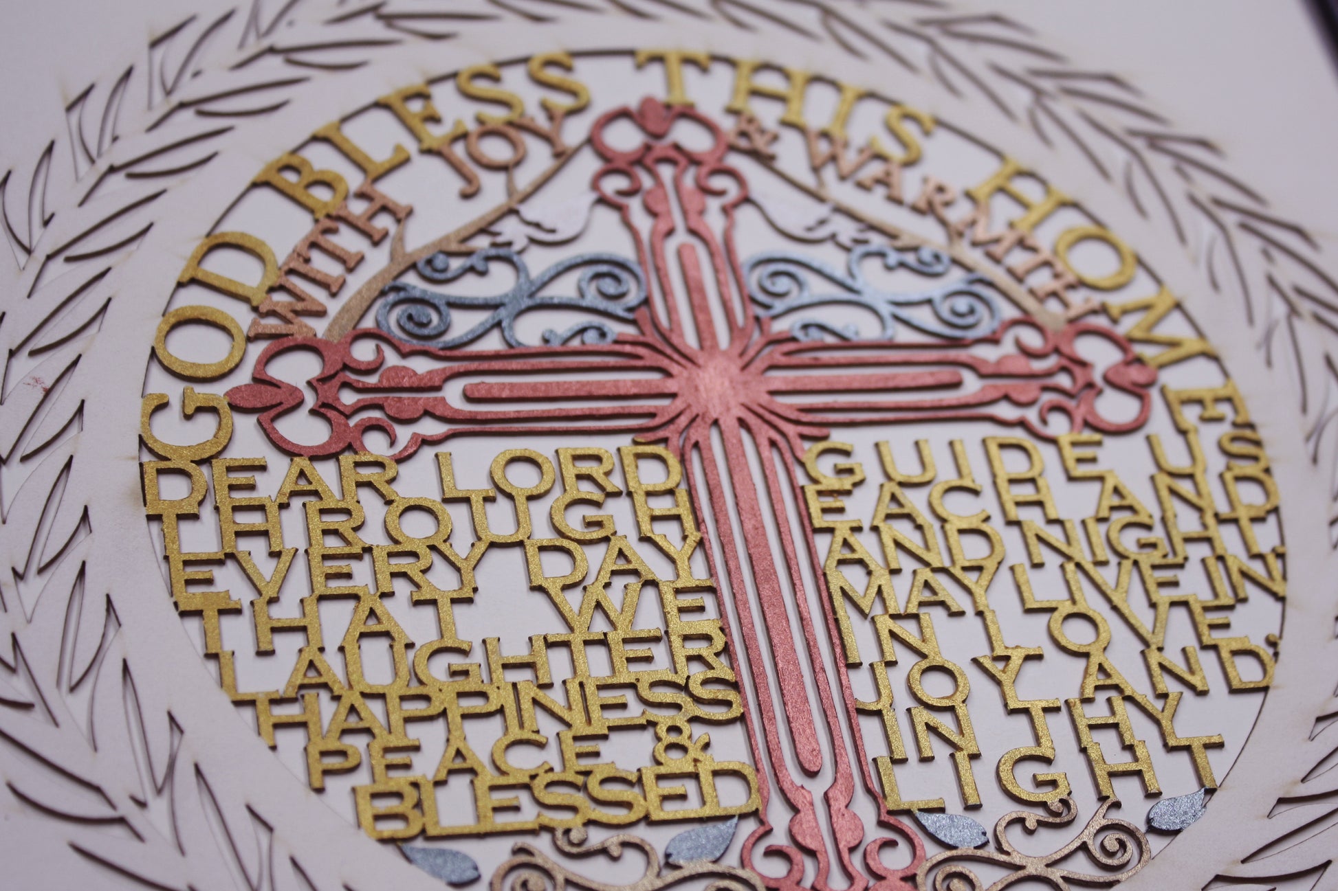 Surrounding the Sign of the Cross, this Home Blessing expresses the inspirational words, “Bless This Home With Joy And Warmth – Dear Lord, Guide Us Through Each And Every Day And Night That We May Live In Love, Happiness, Joy And Peace & In Thy Blessed Light”.