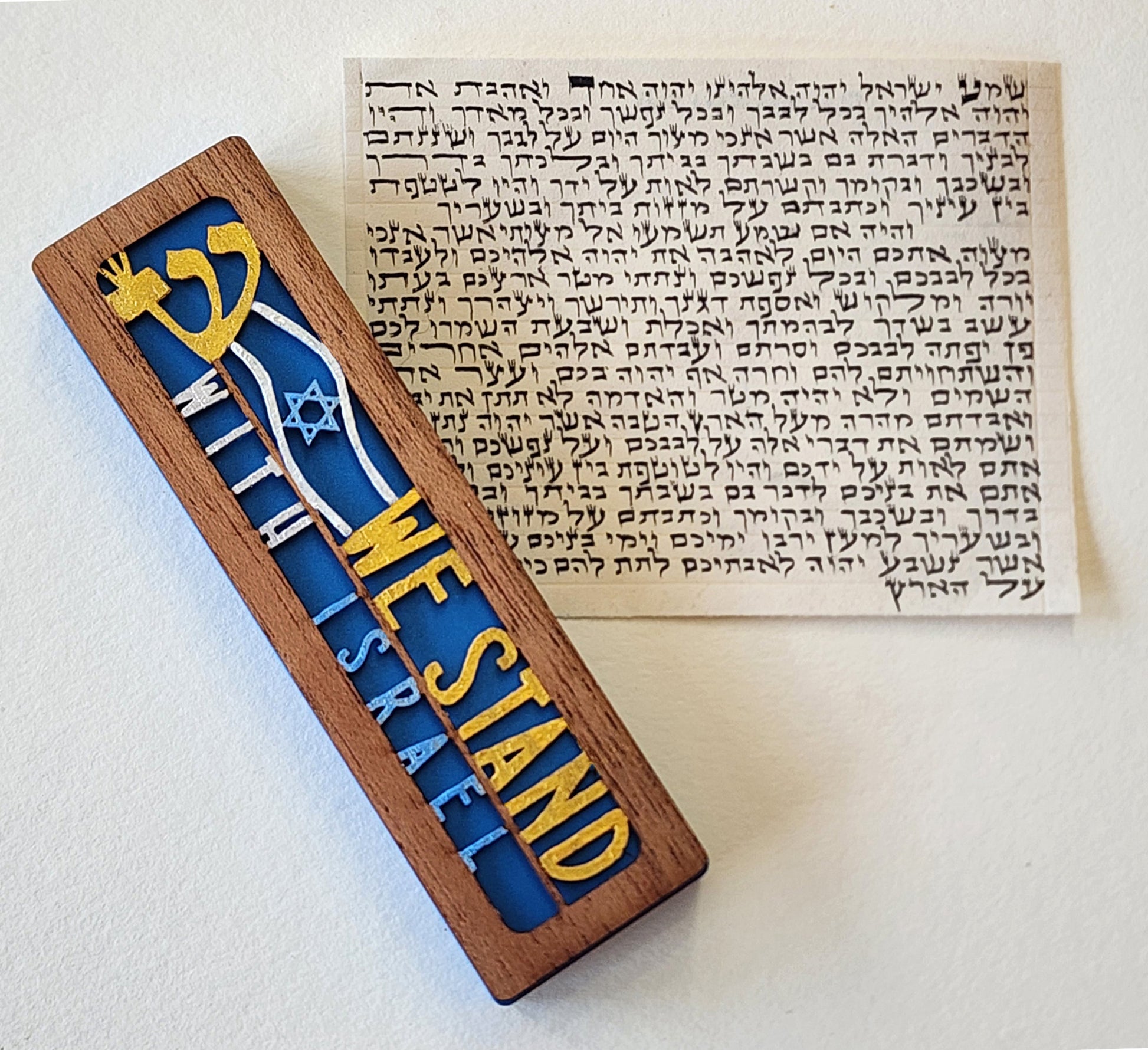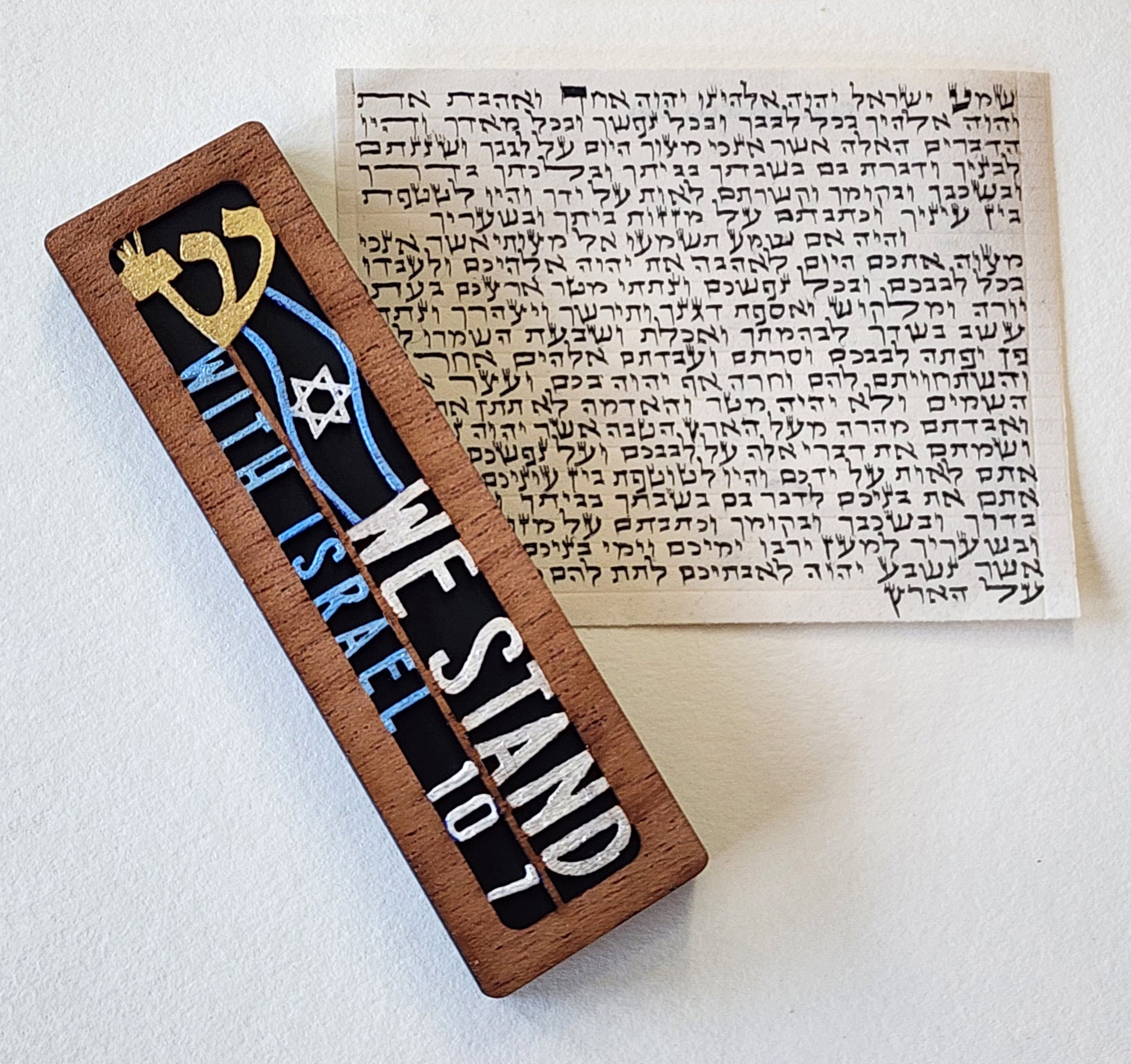Gift-boxed & ready for giving. Based on a high-quality anodized aluminum case, digitally designed, precision-cut from mahogany wood and hand-painted. Available with non-kosher scroll or with a kosher scroll.