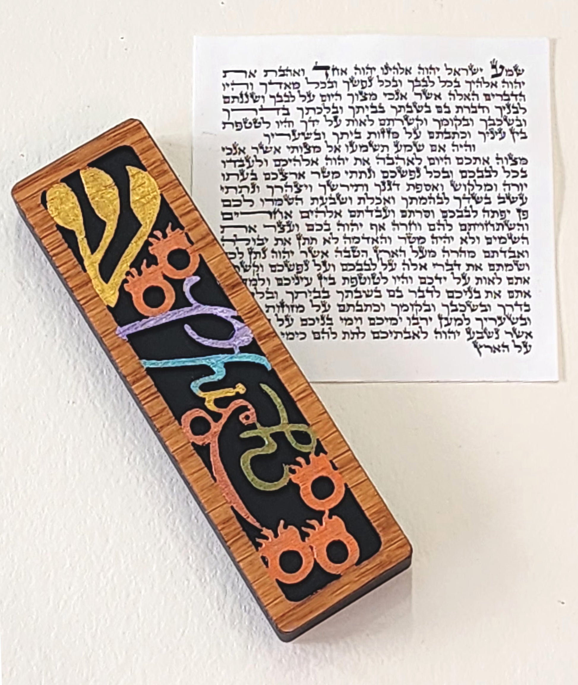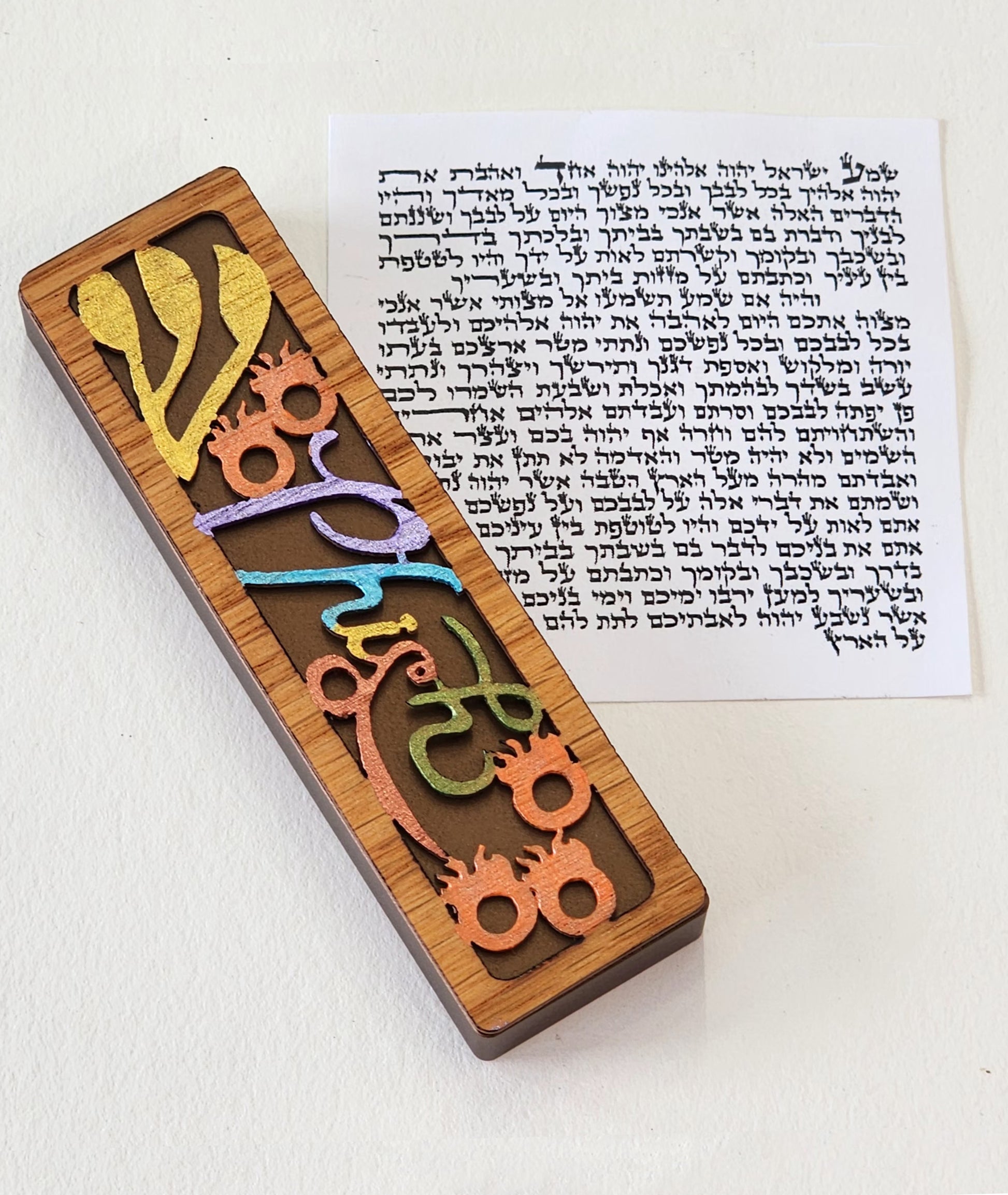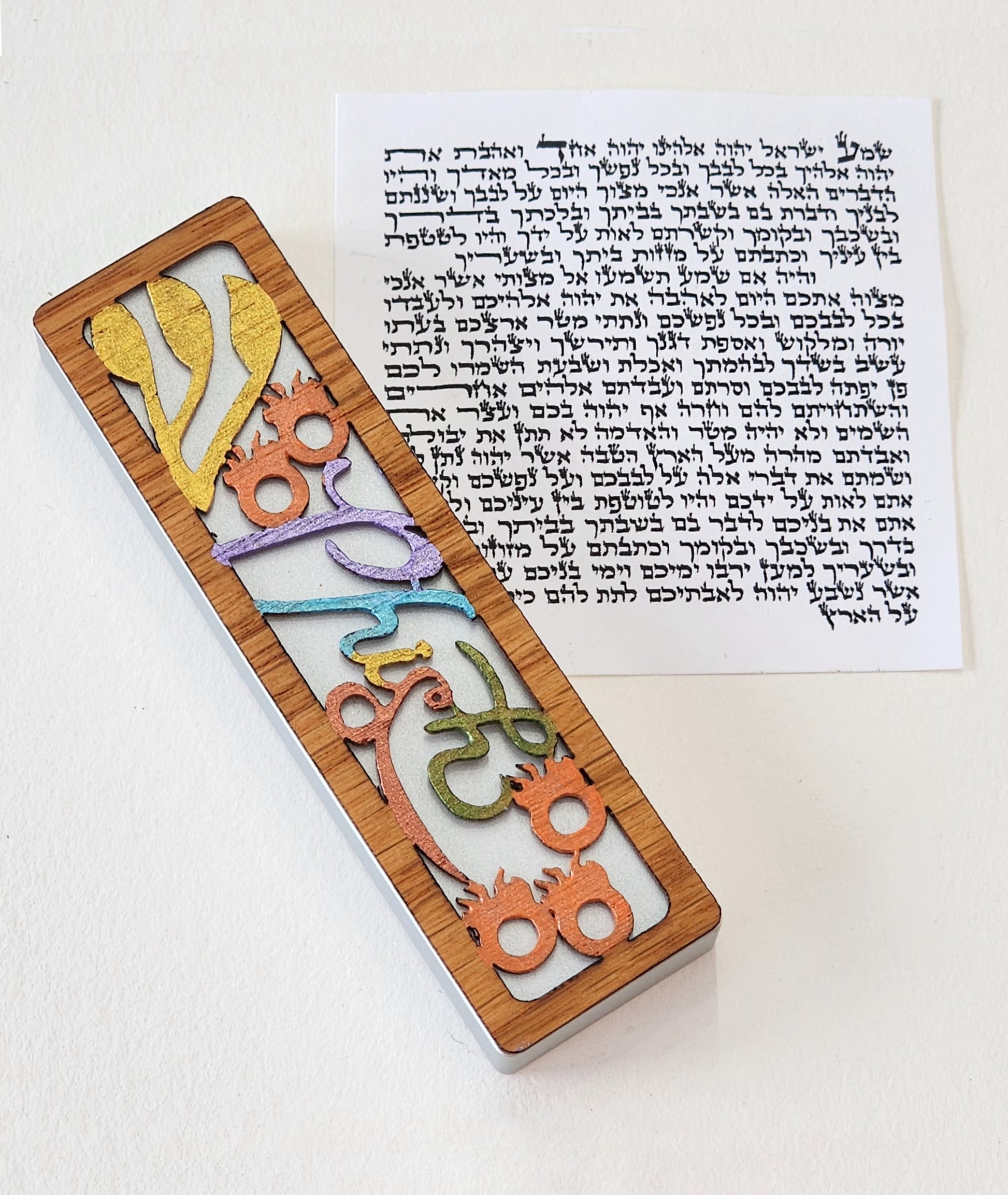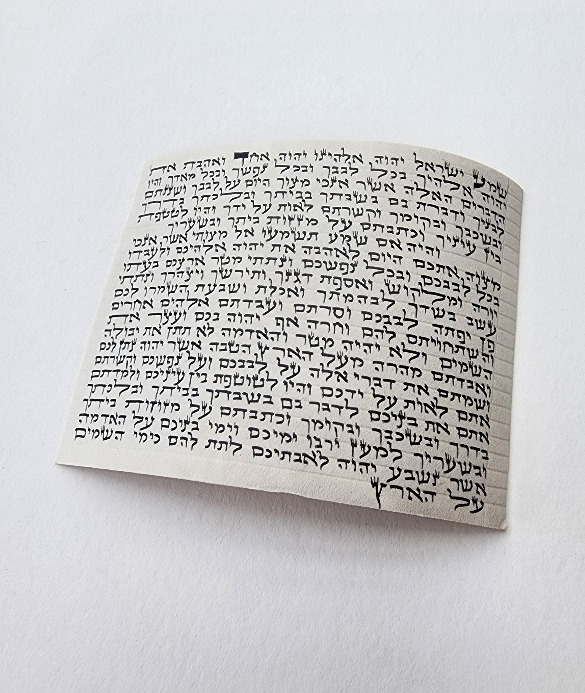 *The Kosher Mezuzah scroll (also known as a klaf) is rolled and placed in the Mezuzah case. Made from genuine parchment from the skin of a kosher animal, inscribed in black ink, and include specific Hebrew verses from the Torah. It is hand-written by a trained, religious devout scribe, known in Hebrew as a sofer. The sofer concentrates intensely and writes with special Hebrew characters in a beautiful calligraphic hand.