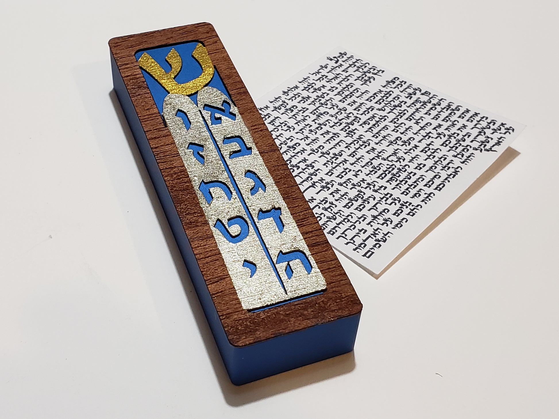 Gift boxed and ready for giving, this “Ten Commandments” Mezuzah available with non-kosher scroll or with a kosher scroll*, is precision cut from mahogany wood, hand-painted, and based on a high-quality anodized aluminum case with self-adhesive backing.