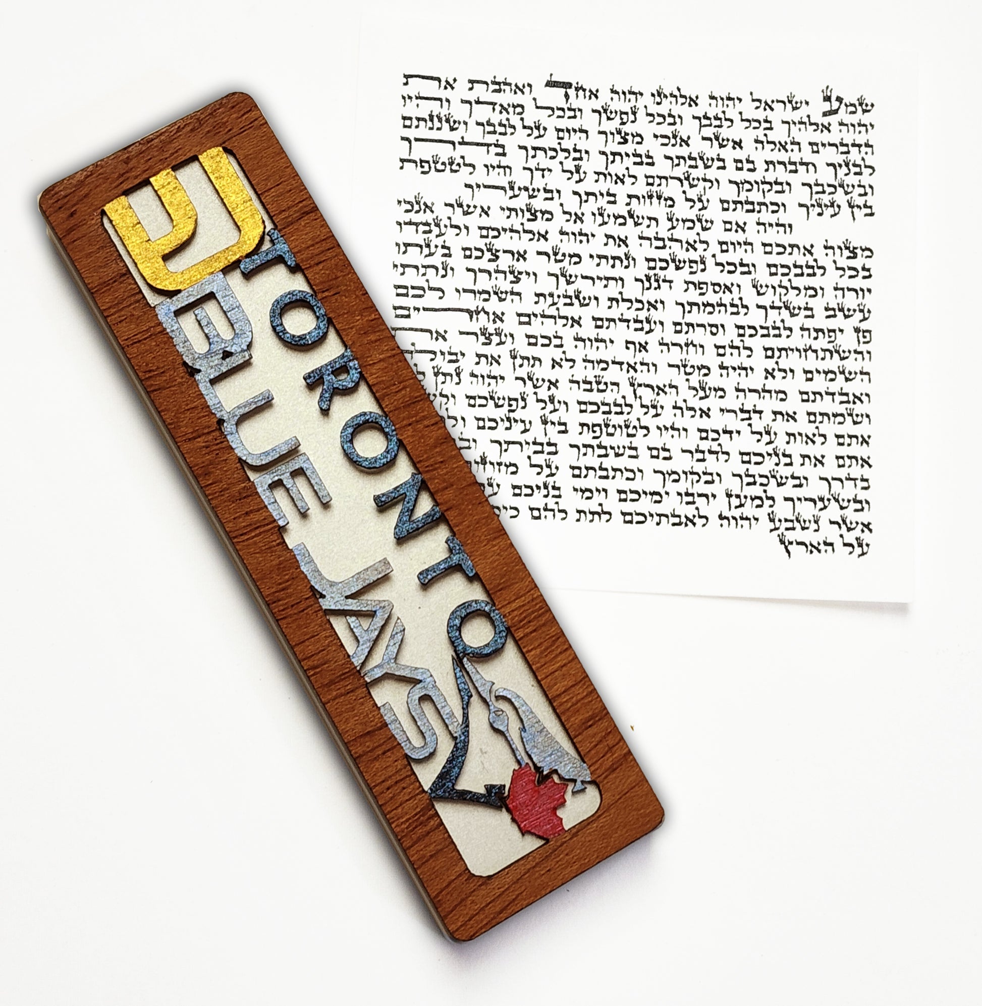 Gift-boxed and ready for giving, this “Toronto Blue Jays" Mezuzah available with non-kosher scroll or with a kosher scroll*, is precision cut from mahogany wood, hand-painted, and based on a high-quality anodized aluminum case with self-adhesive backing.