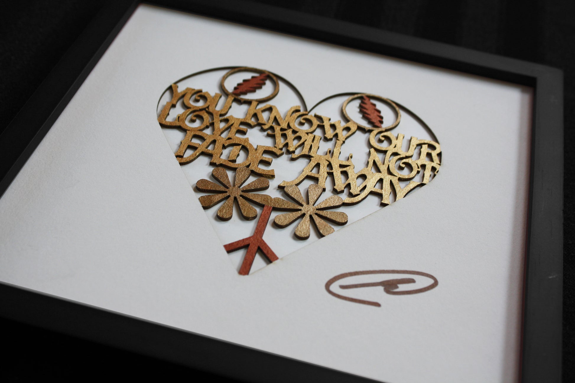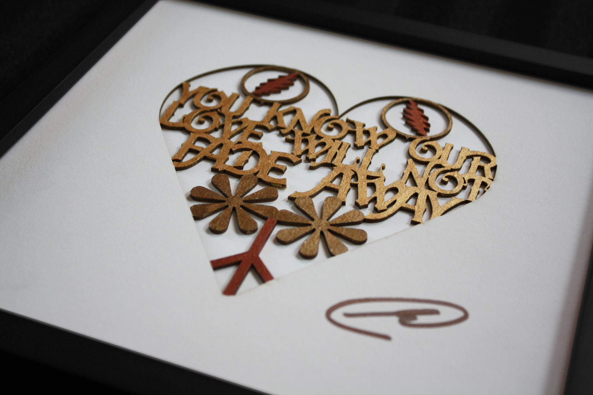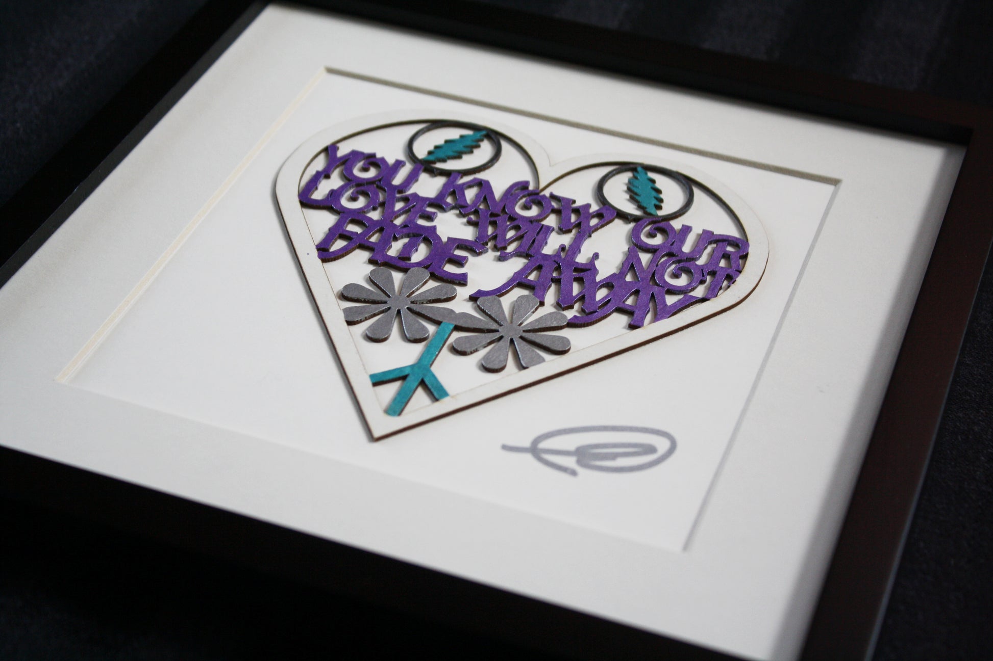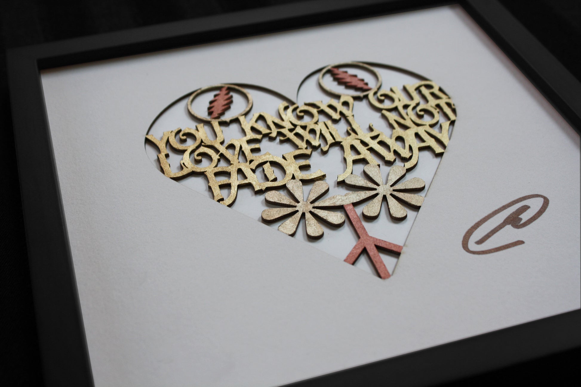Glenn’s unique paper-cut creations are digitally designed on archival museum board (which meets the Library of Congress standards for archival properties), precision cut and hand-painted with eco-friendly acrylic paints, resulting in a beautiful metallic finish. His designs add inspirational saying to encourage and motivate. Perfect for gifts or as part of a collection.